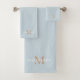 Toalha de banho moderna, elegante e moderna destacada aqui em azul empoeirado com monograma bronzeado e tipografia de nome branco. As cores podem ser personalizadas à sua escolha