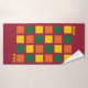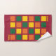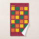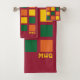 Monograma Bath Toalhas na moda coloridas com quadrados geométricos em paleta cor apimentada de amarelo, verde e laranja, contra fundo burguês. Há um monograma personalizável na mão e toalhas de banho (ligadas), que pode ser substituído por suas próprias iniciais ou nome. Adição moderna à decoração do banheiro. Itens correspondentes estão disponíveis. Também vem na paleta de cores pastel.