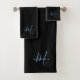 Conjunto De Toalhas Monograma de Script Azul Preto Moderno Elegante