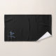 Conjunto de toalhas de banho de Monograma de Script Azul Preto Moderno Elegante. Um monograma elegante de script azul combinado com uma fonte branca de san-serif limpa permite uma aparência contemporânea.