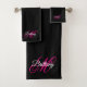 Um monograma personalizado feminino com um script de caligrafia de rico emparelhado em rosa quente e branco contra fundo preto de cor sólida. Crie seu conjunto bonito de toalhas de banho para o quarto dela. Personalize o estilo da fonte ou com cores que correspondam ao tom de cor-de-rosa favorito da sua filha. O rico que faz parte do monograma pode precisar ser recentrado para o seu início. Presente de volta à escola para sua filha indo para a faculdade.