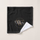 Conjunto de toalhas de monograma preto e dourado com guião Chic elegante. Você pode personalizar o nome, monograma e personalizar a fonte e as cores para criar seu próprio design único. Projetado por Thisnotme©
