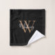 Conjunto de toalhas de monograma preto e dourado com guião Chic elegante. Você pode personalizar o nome, monograma e personalizar a fonte e as cores para criar seu próprio design único. Projetado por Thisnotme©