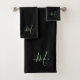 Conjunto De Toalhas Monograma de Script Verde Preto Moderno Elegante