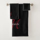 Conjunto De Toalhas Monograma de Script Vermelho Preto Moderno Elegant