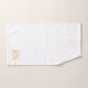 Uma elegante toalha de banheiro minimalista com nome de ouro e iniciais em branco.