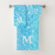 Monograma Iniciais água azul texturas de água ondulada Bath Towel Set
