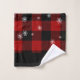 Este conjunto de toalhas de inverno personalizado apresenta um design de Natal. O fundo apresenta uma xadrez vermelha ou um padrão flanela com flocos de neve em queda. Uma amostra inicial de monograma é impressa perto da parte inferior de cada toalha e pano de lavagem, que você pode personalizar para incluir seu próprio texto inicial personalizado ou outro.
