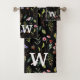 conjunto elegante e colorido de toalhas de monograma personalizado floral, flores pretas coloridas, conjunto de toalhas de banho personalizado,