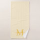 Adicione um toque de elegância ao seu banheiro com este conjunto de toalhas de banho personalizadas com monograma. Com um fundo listrado macio em amarelo e branco, cada toalha é personalizada com o seu monograma inicial e nome em uma fonte de letra cursiva sofisticada para um visual atemporal e feminino.