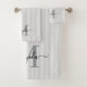 Conjunto De Toalhas Monograma Personalizado Listras Cinza e Branco
