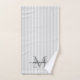 Adicione um toque de elegância ao seu banheiro com este conjunto de toalhas de banho personalizadas com monograma. Com um fundo listrado macio cinza e branco, cada toalha é personalizada com o seu monograma inicial e nome em uma fonte de letra cursiva sofisticada para um visual atemporal e feminino.