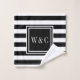Toalha de banho de monograma personalizada elegante com um padrão listrado preto e branco com as suas iniciais. Projetado por Thisnotme©
