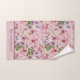 Belas flores rosa e roxas com folhagem neste conjunto de toalhas de banho. O conjunto inclui toalha de mão, toalha de banho e toalha de rosto. Monograma todos os três. Excelente presente de casamento para presente de chá de noiva.