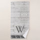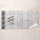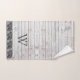 Toalha de cinza de ursos russos, com fundo de madeira rústico e seu nome familiar monograma inicial, para acomodação em casa, cabana, camper ou cama e café da manhã (nome comercial inicial).