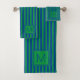 Conjunto De Toalhas Monograma verde e Marinho azul de faixa marítima