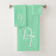 Uma toalha de banho em verde-marinho (#93E9BE), personalizada com monogramas. Projetado para aqueles que desfrutam de um retrô dos anos 50 sentem-se no banheiro. Este verde pálido, reminiscente da natureza, está muitas vezes associado à sorte, frescura, e renovação, fazer-o uma escolha ideal para um presente. Personalize-o facilmente agora com as letras de sua escolha, Projetadas por Alma Wad.