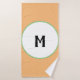 Adicione um estilo único de diversão à decoração do banho. Grandes círculos geométricos com dentro inicial monograma de círculo branco. Bonito laranja mole e fundo verde sage. Tendência moderna divertida. Designs originais por TamiraZDesign.