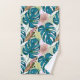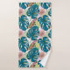 Conjunto De Toalhas Monstera de turquesa escura, pêssego delicado e am
