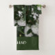 Bonito toalha de banheiro armada com um close-up de flores brancas altas da montanha com folhas verdes grandes e a luz do sol gentil sobre as flores. A toalha de banho maior tem uma borda verde em cima e em baixo com a palavra Amor escrito em texto branco. O louro da montanha é considerado um dos mais belos arbustos nativos americanos com flores de aglomerado em forma de estrela, com pedaços de rosa e vermelho. Esta flor perfumada é a flor estatal para Pensilvânia e Connecticut. Segure uma haste de toalha do banheiro para mostrar, arranjando a toalha grande do banho, a toalha de mão colocada no meio, com o topo do pano de lavagem. Diferentemente da janela de pré-visualização do item, talvez seja necessário dobrar os lados esquerdo e direito da toalha de banho, e a toalha de mão para um ajustado decorativo em camadas mais adorável na haste com o pano de lavagem repousando sobre o plano totalmente colocado. Belas três peças para uso diário também. Adorável para quem ama a natureza. Fotografia original de TamiraZDesign. Visite minha loja para obter mais itens exclusivos em: www.zazzle.com/tamirazdesigns