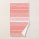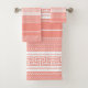Este conjunto de toalhas de banho apresenta um clássico motif grego de linha-chave, com formas elegantes de linha branca contra um fundo cor-de-salmão claro.