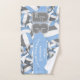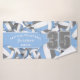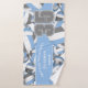 Este conjunto de toalhas atléticas para um voleibol apresenta azul-claro de tamanho variado, cinzas e volichões brancos viraram em todos os sentidos sobre um fundo branco e um número de camisa proeminente em cinzas sobre uma faixa azul clara, de comprimento do cheio, sobre a qual você também pode personalizar o nome do atleta, nome da equipe e nome mascote - por katz_d_zynes