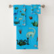 Conjunto De Toalhas Múltiplas espécies de dinossauros no fundo da turq