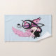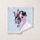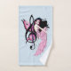 Uma fada bonita, toda cor-de-rosa, com uma nota Musi num pano de fundo azul