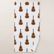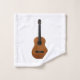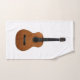 Toalha de banho musical, com design de guitarra acústica sobre fundo branco. Tanto a toalha de mão como o pano de lavagem têm uma imagem de violão de solteiro e a toalha de banho tem um padrão de guitarra em um fundo branco. Uma adição divertida à decoração do banheiro.