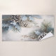 Uma bela toalha de Natal, com uma bela camada azul-clara/cinza, neve caindo, galhos de pinho e cones de pinho.