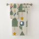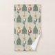 Este conjunto de toalhas tem uma design moderna do século médio de árvores feitas de triângulos, flores feitas de praças e ovais, e estrelas em verdes, azuis e amarelas.