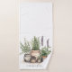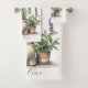 Uma toalha rústica com plantas com cotovelos e seu nome em uma tipografia moderna e bonito. Para amantes da natureza e das plantas. Verduras macias e violeta pastel.