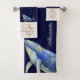 Conjunto De Toalhas Náutica Azul Baleia Aquarela Nome Branco Madeira