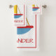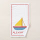 Este conjunto de toalhas de banho divertidas apresenta veleiros coloridos em tons de vermelho, azul e amarelo em branco. Personalize a toalha de mão e a toalha de banho com a sua escolha de nome ou texto especial.