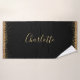 Elegante Black and Dourado Glitter Girly Bath Toel Set apresenta partículas de brilho do ouro nas bordas das toalhas em fundo preto.Um design de menina perfeito vai se adequar a qualquer banheiro moderno de decoração.Ele se ajudará melhor para salão de beleza, spa, salão de cabelo e spa de unhas.Clique no botão personalizar para personalizá-lo com seu nome ou qualquer outro texto personalizado.