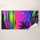 Uma paisagem vibrante e inspirada em neon de uma praia tropical. Este trabalho de arte digital mostra cores ousadas e uma atmosfera sonhadora (Este Design Com IA). Faça a ordem hoje e encare a alegria de Comprar!