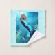 Segurando uma enorme pérola linda, uma sereia azul sobe para a superfície do oceano.