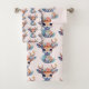 Padrão de conjunto de toalhas com uma ilustração adorável. Um doce veado com olhos grandes, galhadas e um pequeno amigo da borboleta. design querido.