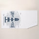 Uma toalha única náutica azul-marinho, armada em casa, para barcos ou cascos costeiros. Personalize com seu nome de família. O design e o tipo e o tipo têm um efeito de recorte de madeira angustiado para acrescentar caráter, e a face de digitação remonta aos anos 1700.