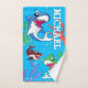 Este design de tubarão ilustrado e bonito é excelente para o amante do tubarão em sua vida. Estes tubarões azuis, vermelhos e verdes ajudarão a secá-lo no banheiro enquanto flutuam no oceano. O nome de texto branco e azul é personalizável!