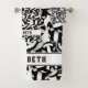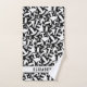 Este conjunto de toalhas temidas de vôlei apresenta um padrão aleatório de vários tamanhos, bolas de volleyball pretas e brancas viradas em todos os sentidos em um fundo branco - personalize a toalha de banho e a toalha de mão com seu nome - por katz_d_zynes