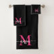 Conjunto De Toalhas Nome do Monograma da Rapariga Preta-Rosa Quente