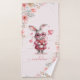 Salve a doçura do nosso romeno coelho rosa e coração Monograma Nome Bath Toalha! Esta design adorável mostra um coelho branco em um vestido cor-de-rosa e óculos em forma de coração, cercado por florais pastéis charmosos. Edite facilmente texto e mova ou exclua gráficos conforme necessário. Crie um nome de monograma e design, compartilhando amor com este Dia de os namorados!