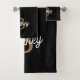 O moderno nome Elegante do monograma, Black Dourado Script Bath Set combina luxo e personalização no seu banheiro. Este conjunto apresenta um design preto elegante, adornado com um roteiro de ouro sofisticado, onde você pode adicionar um monograma personalizado e um nome para um toque exclusivo. Produzidas com algodão peluche de alta qualidade, as toalhas são absorventes e macios, proporcionando uma experiência confortável e na moda. Este conjunto inclui toalhas de banho e toalhas de mão, perfeito para adicionar um toque de elegância e personalização ao seu decoro de banheiro.