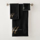 Uma toalha monograma simples para a decoração do banheiro. Dourado monograma branco, a preto. Escrito em chic swash.