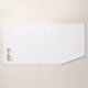 Um ouro elegante e um monograma preto em uma toalha branca. A inicial de ouro tem traços elegantes, enquanto o nome em preto é um estilo clássico de fonte serif, aninhado dentro da inicial de ouro. Estilo chic.