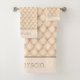 Monograma deste belo conjunto de toalhas de Bath colorido de champanhe. Adicione seu nome ou iniciais. O conjunto inclui toalha de banho, toalha de mão e pano de lavagem. Podem ser comprados como um conjunto ou separadamente.