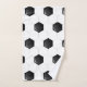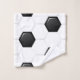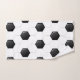 Padrão de Bola de Futebol em branco clássico e preto com NOME verde personalizado no fundo da toalha de banho. Fácil de personalizar texto, cor de texto. O Decor do Banheiro das Crianças Divertidas para as crianças de futebol e esportes. Muitas peças de coordenação. Misturar e combinar coleções inteiras de esportes / Liga Pequena / Futebol por TMCdesigns.