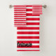 Projetado com padrões legal e na moda de faixa branca em fundo vermelho com nome personalizado modelo em toalha de banho. Você pode mudar as cores como quiser!