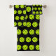 A novidade do padrão de picleball Bath Towel Set para o fanático de picleball em sua vida. Bola amarela tendenciosa ao ar livre em meias pretas. Você pode alterar a cor de fundo. Faz um presente de aniversário excelente! #picleball